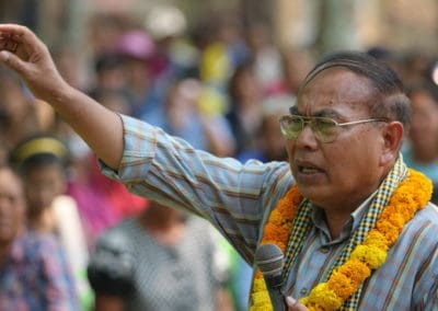 โดยมี รองหัวหน้าพรรค สาคร พรหมภักดี ช่วยปราศรัย นโยบายพรรคชาติพัฒนา วอนขอเมตตา ส.ส.