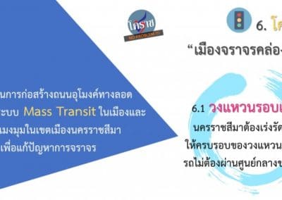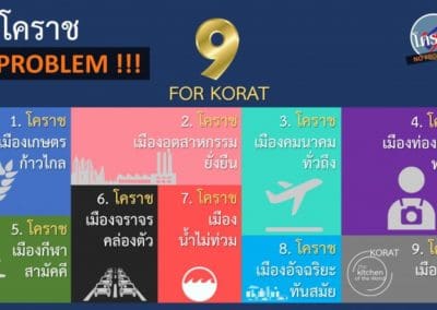 โดยมี โคราช 9 ข้อ โนพลอมแพลม “ต้องไม่ปัญหา” 1. เมืองเกษตรก้าวไกล เกษตรกรเป็นกระดูกสันหลังของระบบเศรษฐกิจของประเทศ ชพน. จึงมีนโยบายผลักดันให้พืชเศรษฐกิจ ข้าว มันสำปะหลัง อ้อย ปาล์ม มีราคาดีขึ้นและยกระดับการผลิตโดยใช้เทคโนโลยีสมัยใหม่ สมาร์ทฟาร์ม รวมทั้งบริหารจัดการระบบชลประทานพัฒนา 9 ลุ่มน้ำโคราช ซึ่งมีพื้นที่รวม 12.8 ล้านไร่ แต่มีเขตชลประทาน 7 แสนไร่ หรือ 8% ของพื้นที่ทั้งหมด และ 5 อ่างเก็บน้ำขนาดใหญ่ ทำให้ชาวโคราชมีน้ำกินน้ำใช้อย่างทั่วถึง 2. เมืองอุตสาหกรรมยั่งยืน เปลี่ยนสนามรบเป็นสนามการค้า โคราชมีโรงงานอุตสาหกรรมทั้งสิ้น 2,697 แห่ง จ้างแรงงานกว่า 1.9 แสนคน หรือ 10% ของประชากรทั้งหมด ชพน. จะส่งเสริม พัฒนาและผลักดันให้เกิดการขยายการลงทุนเพิ่มโรงงานและการจ้างงาน 3. เมืองคมนาคมทั่วถึง ปรับปรุงขยายเส้นทางหลักให้เชื่อมทั่วถึงกัน 4. เมืองท่องเที่ยวทุกถิ่น 5. เมืองกีฬาสามัคคี 6. เมืองจราจรจรคล่องตัว 7. เมืองน้ำไม่ท่วม 8. เมืองอัจฉริยะ และ 9. เมืองครัวโลก