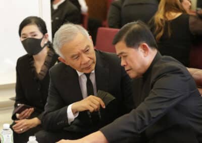 นอกจากนี้ ยังมีนักการเมือง นักเคลื่อนไหวทางการเมือง เดินทางมาร่วมพิธี เป็นจำนวนมาก เช่น นายชวน หลีกภัย ประธานสภาผู้แทนราษฎร นายพุทธิพงษ์ ปุณณกันต์ รัฐมนตรีว่าการกระทรวงดิจิทัลเพื่อเศรษฐกิจและสังคม นายบัญญัติ บรรทัดฐาน กรรมการที่ปรึกษาพรรคประชาธิปัตย์ , นายอภิสิทธิ์ เวชชาชีวะ อดีตหัวหน้าพรค , นายองอาจ คล้ามไพบูลย์ รองหัวหน้าพรรคประชาธิปัตย์ , นายสุเทพ เทือกสุบรรณ แกนนำพรรค รปช. , นายสุวัจน์ ลิปตพัลลภ ประธานที่ปรึกษาพรรคชาติพัฒนา , นายพีระพันธุ์ สาลีรัฐวิภาค ที่ปรึกษานายกรัฐมนตรี , นายสาธิต ปิตุเตชะ รัฐมนตรีช่วยว่าการกระทรวงสาธารณสุข , นายวีรศักดิ์ โควสุรัตน์ อดีต รมว.ท่องเที่ยว