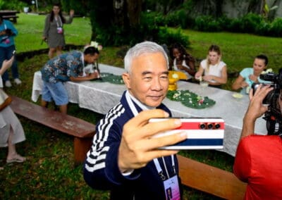 นอกจากนี้ ในระหว่างกิจกรรม นายสุวัจน์ ลิปตพัลลภ อดีตรองนายกรัฐมนตรี และนายกกิตติมศักดิ์สมาคมกีฬาลอนเทนนิสแห่งประเทศไทย ในพระบรมราชูปถัมภ์ ในฐานะประธานที่ปรึกษาการจัดการแข่งขัน “แอลไลด์ ไทยแลนด์ โอเพ่น 2024 พรีเซนเต็ด บาย แคล-คอมพ์” ได้เดินทางมาร่วมชม พร้อมพูดคุยกับนักกีฬาทั้ง 4 คนอย่างเป็นกันเองด้วย และหลังจากใช้เวลาประมาณ 20 นาที นักเทนนิสทั้ง 4 คน สามารถร้อยพวงมาลัยได้เสร็จสมบูรณ์ พร้อมกับได้พวงมาลัยที่เป็นงานฝีมือของตัวเองติดมือกลับไปด้วย