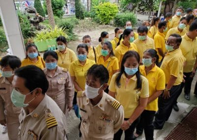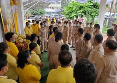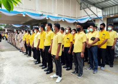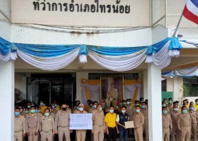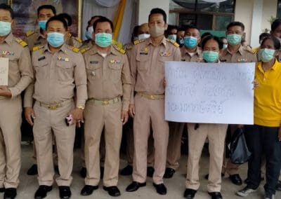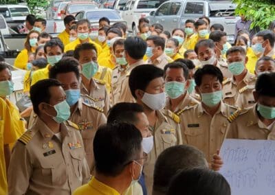 วันอังคารที่ 20 ตุลาคม 2563 เวลา 10.00 น. นายสุวิชา จอประยูร ประธานชมรมกำนัน ผู้ใหญ่บ้าน อ.ไทรน้อย พร้อมด้วย กำนัน ผู้ใหญ่บ้าน แพทย์ประจำตำบล สารวัตรกำนัน ผู้ช่วยผู้ใหญ่บ้าน ทุกตำบล ทุกหมู่บ้าน จำนวน 225 คน ได้ร่วมยื่นหนังสือแสดงเจตนารมณ์ที่จะปกป้อง เทิดทูน สถาบัน ชาติ ศาสนา พระมหากษัตริย์ ให้กับ นายพิรุณ วิมลอักษร นายอำเภอไทรน้อย ทั้งนี้ได้ร่วมกันร้องเพลงสรรเสริญพระบารมี หลังจากนั้นได้แยกย้ายกันเดินทางกลับ