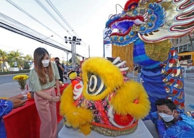 นอกจากนี้ ยังได้อัญเชิญเทพเจ้าเสือ (องค์ตั่วเหล่าเอี๊ยกง) จากศาลเจ้าพ่อเสือเสาชิงช้า ซึ่งถือว่าเป็นศาลเจ้าจีนแต้จิ๋วที่มีอายุเก่าแก่นับร้อยปี มาให้ประชาชนได้มากราบไหว้ขอพร เสริมสิริมงคล ด้วยความเชื่อว่าบารมีความศักดิ์สิทธิ์ของเจ้าพ่อเสือ ไม่ว่าใครจะเกิดปีไหน ก็สามารถมาไหว้ขอพรกับท่านได้ ทั้งเรื่องงาน เรื่องเงิน โชคลาภ ช่วยปัดเป่าอุปสรรค โดยสามารถมาสักการะเทพเจ้าเสือได้ระหว่างวันที่ 25 มกราคม 2565 ถึง 6 กุมภาพันธ์ 2565 ที่บริเวณ เอเทรี่ยม ชั้น G