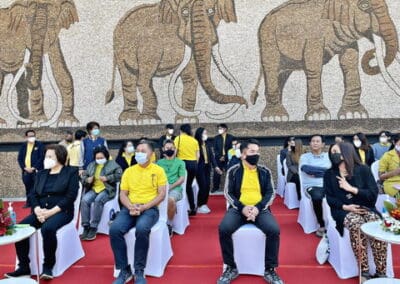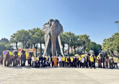 ในวันนี้ได้นำ ขบวนช้างมาร่วมพิธีลอดท้องช้าง 9 เชือก นำหน้าขบวนคณะผู้บริหาร เดินลอดท้องช้าง และร่วมถ่ายรูปเป็นที่ระลึก