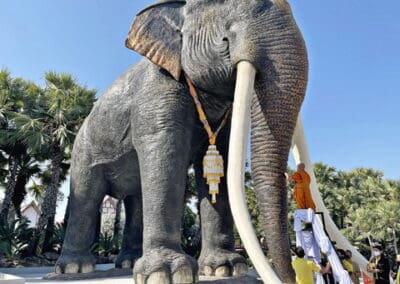วันพุธ ที่ 13 มกราคม 2564 เวลา 09.39 น. ณ บริเวณหน้าโรงละครสกาลา นงนุชพัทยา นายกัมพล ตันสัจจา ประธานสวนนงนุชพัทยา ได้ทำพิธีเปิดตัวรูปปั้นพญาช้างยักษ์ใหญ่ปั้นด้วยซีเมนต์ 1 ตัว เพศผู้ (ช้างพลาย) ความสูง 10 เมตร ยาว 16 เมตร โดยได้นิมนต์ พระครูเกษมกิตติโสภณ เจ้าอาวาสวัดสามัคคีบรรพต เป็นผู้ประกอบพิธีเจิมช้างยักษ์ใหญ่ พร้อมสวดชัยมงคลคาถา เพื่อความเป็นสิริมงคล ช้างยักษ์ใหญ่ปั้นด้วยซีเมนต์ตัวนี้ ตั้งตระหง่านอยู่บริเวณ ด้านหน้าทางเข้าชมการแสดงศิลปวัฒนธรรมไทย และช้างแสนรู้ เพื่อให้นักท่องเที่ยวลอดท้องช้างยักษ์ใหญ่ เสริมความเป็นสิริมงคล โชคดี อยู่เย็นเป็นสุขในปี 2564