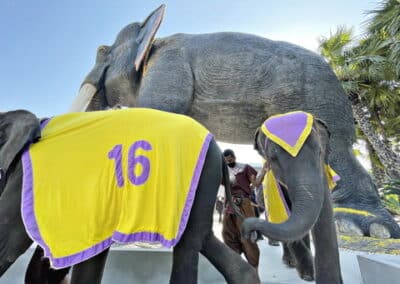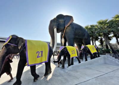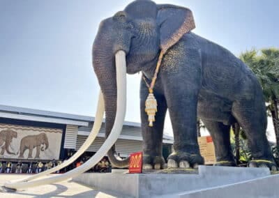สวนนงนุชพัทยา นำช้างแสนรู้ 9 เชือก เปิดตัวพญาคชสารหรือช้างยักษ์ ใหญ่ที่สุดในประเทศไทย ให้นักท่องเที่ยวลอดท้องพญาช้าง เสริมความเป็นสิริมงคล