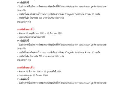 การตัดสินภาพ และ รางวัลต่างๆ การตัดสินรอบที่ 1 – ส่งภาพ 16 ตุลาคม 2563256325632563 – 15 พฤศจิกายน 2563256325632563 – ประกาศผล 28 พฤศจิกายน 2563256325632563 รางวัลมีดังนี้ – ใบประกาศนียบัตร รางวัลชมเชย พร้อมบัตรที่พักโรงแรม Holiday HolidayHolidayHolidayHolidayHoliday Inn Vana Vana ResortResortResort Resort มูลค่า 6,0006,000 บาท 30 รางวัล – รางวัลชื่นชม บัตรสวนน้าวานานาวา หัวหิน รางวัลละ 2 ใบมูลค่า 2,4002,400 2,400 บาท จานวน 90 รางวัล – รางวัลชื่นใจ เงินรางวัล 500 บาท จานวน 100100100 รางวัล รวม 220 รางวัล การตัดสินรอบที่ 2 – ส่งภาพ 16 พฤศจิกายน 2563256325632563 – 15 ธันวาคม 2563256325632563 – ประกาศผล 28 ธันวาคม 2563256325632563 รางวัลมีดังนี้ – ใบประกาศนียบัตร รางวัลชมเชย พร้อมบัตรที่พักโรงแรม Holiday HolidayHolidayHolidayHolidayHoliday Inn Vana Vana ResortResortResort Resort มูลค่า 6,0006,000 บาท 30 รางวัล – รางวัลชื่นชม บัตรสวนน้าวานานาวา หัวหิน รางวัลละ 2 ใบมูลค่า 2,4002,400 2,400 บาท จานวน 90 รางวัล – รางวัลชื่นใจ เงินรางวัล 500 บาท จานวน 100100100 รางวัล รวม 220 รางวัล การตัดสินรอบที่ 3 – ส่งภาพ 16 ธันวาคม 2563256325632563 – 28 กุมภาพันธ์ 2564256425642564 – ประกาศผลรวม 20 มีนาคม 2564256425642564 รางวัลมีดังนี้ – ใบประกาศนียบัตร รางวัลชมเชย พร้อมบัตรที่พักResort Holiday Inn Vana Resort Holiday Inn Vana Resort Holiday Inn Vana Resort Holiday Inn Vana Resort Holiday Inn Vana Resort Holiday Inn Vana Resort Holiday Inn Vana Resort Holiday Inn Vana Resort มูลค่า 6,000 6,000 บาท 30 รางวัล – รางวัลชื่นชม บัตรสวนน้าวานานาวา หัวหิน รางวัลละ 2 ใบมูลค่า 2,400 2,400 2,400 2,400 บาท จานวน 90 90 90 รางวัล – รางวัลชื่นใจ เงินรางวัล 500 บาท จานวน 100 รางวัล รวม 220 รางวัล