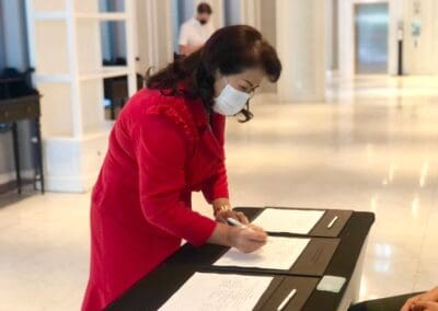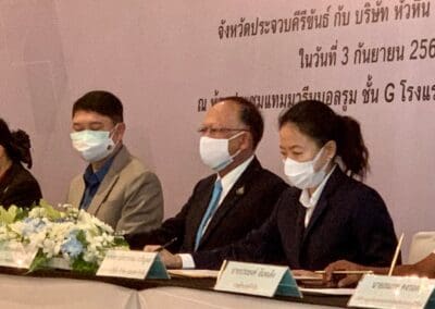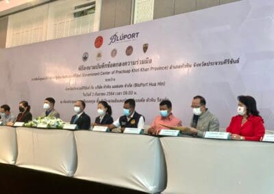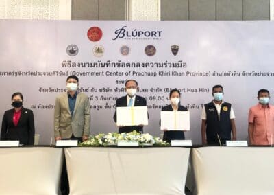 วันนี้ (3 ก.ย.64) ห้องบอลรูม โรงแรมอินเตอร์คอนติเนนตัล หัวหิน รีสอร์ต นายพรหมพิริยะ กิจนุสนธิ์ รองผู้ว่าราชการจังหวัด ปฏิบัติราชการแทนผู้ว่าราชการจังหวัดประจวบคีรีขันธ์ เป็นประธานในพิธีลงนามบันทึกข้อตกลงความร่วมมือ (MOU) การจัดตั้งศูนย์บริการภาครัฐจังหวัดประจวบคีรีขันธ์ (Government Center of Prachuap Khiri Khan Province) โดยมี คุณอัครวรรณ เจริญผล กรรมการผู้จัดการ บริษัท หัวหิน แอสเสท จำกัด ผู้รับมอบอำนาจจาก บลูพอร์ต หัวหิน ร่วมลงนามพร้อมด้วยตัวแทนจากหน่วยงานราชการ ให้เกียรติเข้าร่วมพิธีการจัดทำบันทึกข้อตกลงดังกล่าว