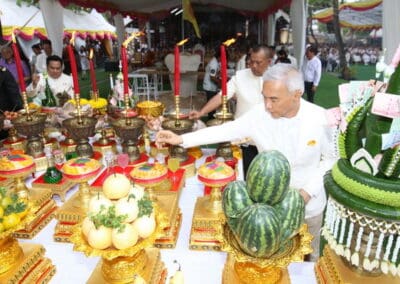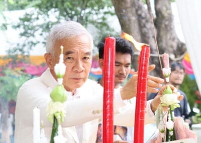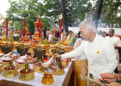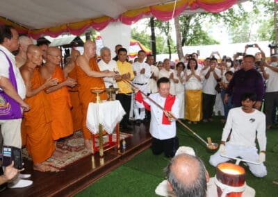 สุวัจน์ ประธานฝ่ายฆราวาสในพิธีเททองหล่อพระชัยเมือง ใหญ่ที่สุดของโคราช เนื่องในวันวิสาขบูชา