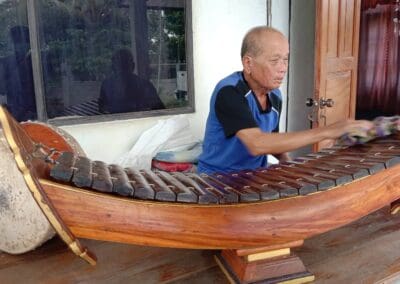 นครราชสีมา – วันที่ 23 กรกฎาคม 2564 ผู้สื่อข่าวได้รายงานว่า กลุ่มอนุรักษ์เครื่องดนตรีไทย ในอำเภอพิมาย จังหวัดนครราชสีมา เจอพิษโควิดระบาด ทำตกงาน ขาดรายได้ โดยนายสม เฉียบพิมาย อายุ 84 ปี ตัวแทนกลุ่มคนรักดนตรีไทย บ้านท่าหลวง หมู่ที่ 12 ตำบลท่าหลวง อำเภอพิมาย บอกว่า ตนเองได้ฝึกสอนการเล่นตนตรีไทย มานานกว่า 40 ปีแล้ว โดยมีลูกน้องในวงจำนวน 7 คน โดยจะอาศัยรับงานมหรสพต่างๆ ในพื้นที่ เช่น งานบวช งานโกนผมไฟ งานศพ เป็นต้น การรับงานในแต่ละครั้งก็จะประมาณ 5,000-6,000 บาท โดยในช่วงที่ยังไม่มีการแพร่ระบาดของเชื้อโควิด ตนเองจะมีงาน ประมาณ เดือนละ 4-5 งาน เพราะคนในพื้นที่ มักจะจ้างตนเองไปเล่นในงาน เพราะเครื่องดนตรีไทย ชนิด ระนาด กล้องโทน ฆ้อง ปี่ เป็นเครื่องดนตรีไทยที่เหมาะในการเล่นงานมหรสพต่างๆ แต่หลังจากที่มีการแพร่ระบาดของเชื้อโควิด-19 ในรอบนี้ ซึ่งเป็นรอบที่หนักมาก ทำให้ ไม่มีงานจ้างเลยแม้แต่งานเดียว เพราะว่า ไม่มีใครจัดงาน ตนเองและลูกน้องที่เล่นดนตรีไทย ต้องตกงาน ได้รับความเดือดร้อน เพราะลูกน้องทุกคน มีอาชีพเล่นดนตรีไทยมานานหลายปี จึงอยากวอนให้ทางภาครัฐเข้ามาช่วยเหลือดูแลกลุ่มดนตรีไทยด้วย.