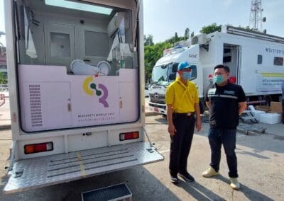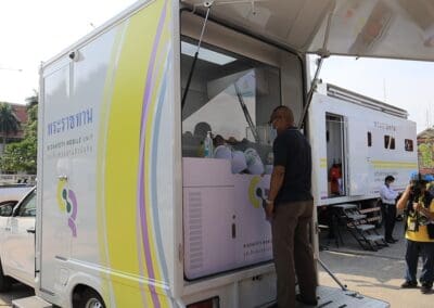 นายวิเชียร จันทรโณทัย ผู้ว่าราชการจังหวัดนครราชสีมา กล่าวว่า สำหรับรถเก็บตัวอย่างชีวนิรภัยพระราชทานจะตรวจหาเชื้อวิด-19ให้กับประชาชนในพื้นที่เขต อ.เมืองนครราชสีมา เป็นเวลา 3 วัน ตั้งแต่วันที่ 23-25 เมษายน 2564 ที่บริเวณสนามหน้าศาลากลางจังหวัดนครราชสีมา หลังจากนั้น จะย้ายรถเก็บตัวอย่างชีวนิรภัยพระราชทาน ไปในพื้นที่อำเภอที่พบผู้ป่วย เช่น อ.ด่านขุนทด อ.ปากช่อง อ.สีคิ้ว อ.สูงเนิน และ อ.ประทาย ตั้งแต่วันที่ 26 เมษายน – 2 พฤษภาคม 2564 เพื่อตรวจหาเชื้อเชิงรุกในพื้นที่ต่างๆ ต่อไป สำหรับสถานการณ์การแพร่ระบาดของไวรัสโควิด-19ในพื้นที่จังหวัดนครราชสีมา วันนี้พบผู้ป่วยติดเชื้อเพิ่ม 31 ราย รวมมียอดผู้ป่วยสะสม 384 ราย รักษาหาย 25 ราย ยังรักษาอยู่ 258 ราย