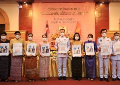 ผู้ว่าโคราชเชิญแบบผ้าลายพระราชทาน ผ้าขิดลายนารีรัตนราชกัญญา มอบแก่กลุ่มอาชีพทอผ้า ทั้ง 32 อำเภอ เพื่อใช้เป็นต้นแบบในการพัฒนาลวดลายผ้าไทยให้เกิดความหลากหลายและร่วมสมัย ก้าวสู่สากล
