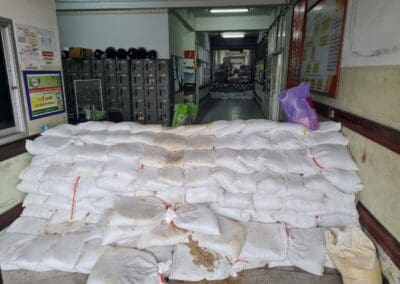 รพ.มหาราชโคราช ระดมกระสอบทรายป้องกันน้ำทะลักท่วมโรงอาหาร และโรงซักอบผ้า สั่งปิดประตูหลัง รพ. พร้อมตั้งเครื่องสูบน้ำออกตลอด 24 ชม. หวั่นท่วมหนักเหมือนปี 53