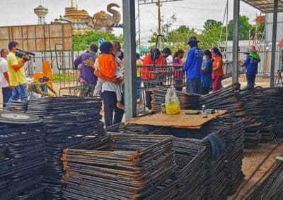 พี่น้องชาวบ้านกุดพิมาย วัดบ้านไร่ ลงแขก 60 กว่าคน ร่วมแรงร่วมใจ ผูกมัดเหล็ก สร้างหลวงพ่อคูณองค์ใหญ่ วัดบ้านไร่