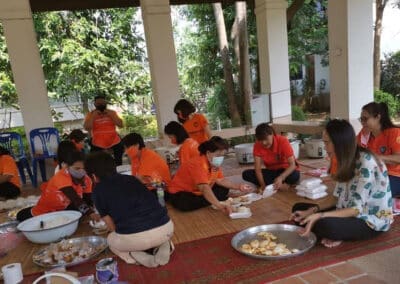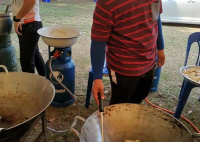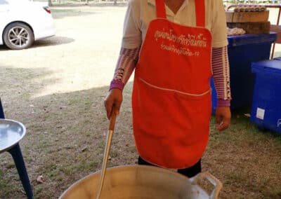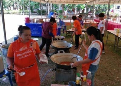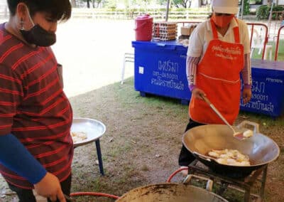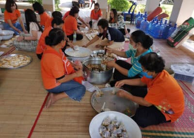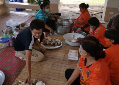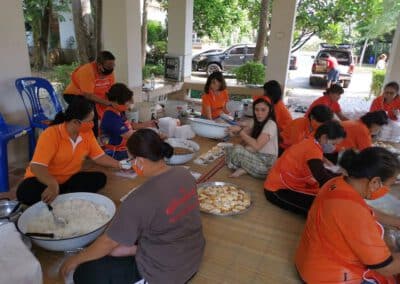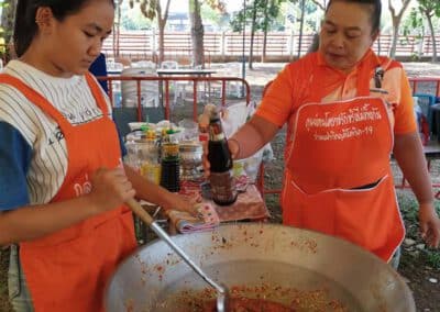 แม่ครัวจากวัดบ้านไร่ อ.ด่านขุนทด จ.นครราชสีมา มาเปิด“ครัวหลวงพ่อ” ทำข้าวกล่องให้รับประทาน ขณะที่กลุ่มสตรีแม่บ้าน อสม.อำเภอเมืองนครราชสีมา ก็ตั้งโรงครัวโคราช ทำข้าวผัดกะเพราไก่ไข่ดาว แจกจ่ายด้วยเช่นกัน