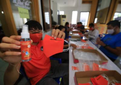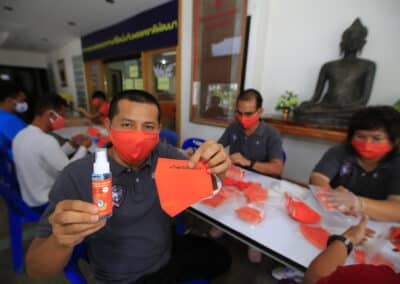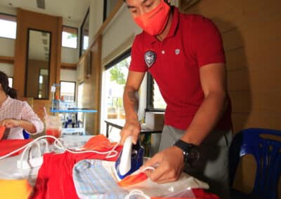 ด้าน ผจก.ทีม สวาทแคท พ.อ. วัชรกร อ้นทะคำภู ย้ำว่าวินัย ของทีมสวาทแคท ยังมาตรฐาน กับโปรแกรมการ ซ้อมอยุ่ที่บ้าน โดยจะตรวจการบ้านทางไลน์ กลุ่ม ว่าทุกคน ยังฟิต และดูแลสุขภาพ ขนาดไหน สำหรับวันนี้ ได้มาร่วม บรรจุหน้ากาก และแอลกอฮอลล์ สเปรย์ เพื่อนำไปแจกจ่าย ให้กับ ผู้เดือนดร้อน โดยจะหมุนเวียน นักกีฬาฟุตบอล และเจ้าหน้าที่ เข้ามาที่ศ.คนโคราชรักจริงไม่ทิ้งกัน ตลอด การปิดฤดูการ เพื่อสู้กับ โควิด 19