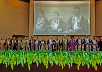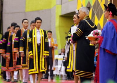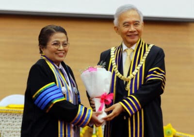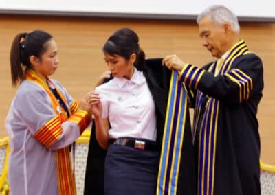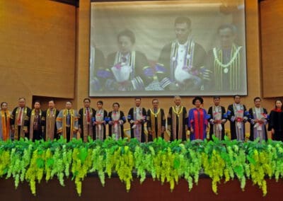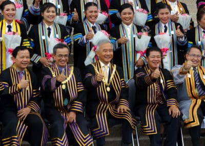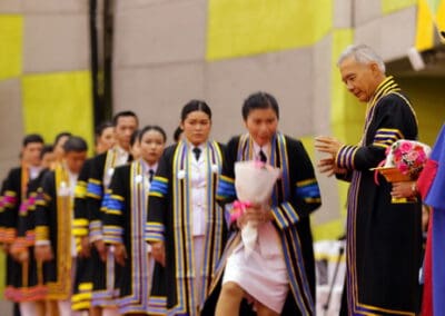 “ขอให้ร่วมมือกันต่อสู้และอดทน เพื่อใช้ความรู้ความสามารถในการช่วยผลักดันเศรษฐกิจของประเทศและเพื่อครอบครัว ช่วยกันเสียสละเพื่อชาติบ้านเมือง Made in Thailand ซื้อสินค้าไทย ไทยช่วยไทย ไทยเที่ยวไทย ไทยทำ ไทยใช้ ไทยเจริญ ประคับประคองสักปี ผมอยากจะฝากบัณฑิตให้นำความรู้ความสามารถไปใช้ให้เกิดประโยชน์ต่อไป ขอแสดงความยินดี อีกครั้งหนึ่ง ขอให้ทุกท่านประสบความสำเร็จและได้ใช้วิชาความรู้ ให้เกิดประโยชนสูงสุดต่อไป”นายกสภามหาวิทยาลัยฯ กล่าว