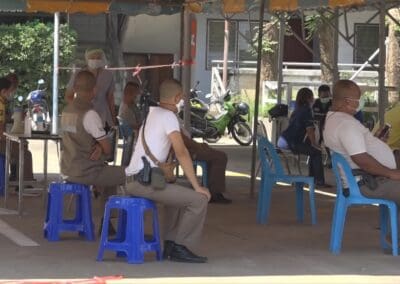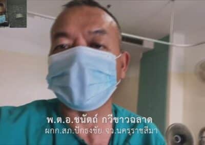 ผู้สื่อข่าวรายงานว่า หลังการติดเชื้อโควิดของ พ.ต.อ.ชนัตถ์ กวีขาวฉลาด ผกก.สภ.ปักธงชัย จ.นครราชสีมา ทางศบค.อำเภอปักธงชัย ได้ทำการสั่งปิด สภ.ปักธงชัย และระดมกำลังเจ้าหน้าที่ตรวจหาเชื้อตำรวจกลุ่มเสี่ยงทั้งหมดของ สภ.ปักธงชัย จำนวนกว่า 140 นาย พร้อมทั้งผู้ใกล้ชิด พ่อค้า แม่ค้า และประชาชนใกล้เคียงโรงพัก รวมกว่า 200 คน ตั้งแต่วันที่ 21 พฤษภาคม 2564 ที่ผ่านมา ล่าสุดวันที่ 22 พฤษภาคม 2564 ผลออกมาเป็นลบทุกคน จึงมีคำสั่งให้ สภ.ปักธงชัยสามารถเปิดบริการประชาชนได้แล้ว พ.ต.อ.ชนัตถ์ กวีขาวฉลาด ผกก.สภ.ปักธงชัย ได้เปิดใจผ่านวีดีโอคอล ขณะพักรักษาอาการป่วยที่ รพ. ว่า ตนเองเป็นกลุ่มเสี่ยงพยายามการ์ดไม่ตกแต่ก็ไม่รอดติดเชื้อจากคนใกล้ชิดซึ่งตนไปกินข้าวด้วย พอติดเชื้อก็ไม่แสดงอาการเจ็บป่วยอะไรใช้ชีวิตตามปกติ ออกกำลังกาย สวมหน้ากากอนามัยตลอดเวลา โดยตนฉีดวัคซีนเข็มแรกเมื่อวันที่ 23 เมษายน 2564 และเข็มที่ 2 วันที่ 14 พฤษภาคม 2564 เวลา 09.00 น. และในวันเดียวกันเวลา 18.00 น. ได้ไปสัมผัสกับผู้ที่ติดเชื้อ เมื่อรู้ว่าคนที่ตนไปสัมผัสติดเชื้อจึงไปตรวจและก็พบว่าผลเป็นบวกทั้งๆที่ไม่แสดงอาการใดๆเลย จึงได้ทำการกักตัวและรักษาตามที่แพทย์สั่ง เหตุผลที่ไม่แสดงอาการเจ็บป่วยรุนแรงใดๆเหมือนคนไข้รายอื่น แพทย์ระบุว่าเป็นเพราะฉีดวัคซีนมาแล้ว 2 เข็ม เริ่มจะมีภูมิคุ้มกัน ประกอบกับตนเองไม่มีโรคประจำตัวเลยและมีสุขภาพแข็งแรงจึงทำให้สามารถต่อสู้กับเชื้อโรคร้ายนี้ได้ เฉพาะนั้นตนจึงขอฝากให้เพื่อนตำรวจและประชาชนทุกคนที่ยังลังเลว่าจะฉีดวัคซีนดีหรือไม่ให้ดูกรณีของตนเป็นตัวอย่าง ตนมีสุขภาพแข็งแรงไม่มีโรคประจำตัวยังติดโควิดได้และจากการฉีดวัคซีนเข้าร่างกายสร้างภูมิคุ้มกันจึงทำให้มีการไม่รุนแรง พ.ต.อ.ชนัตถ์ฯ กล่าว.