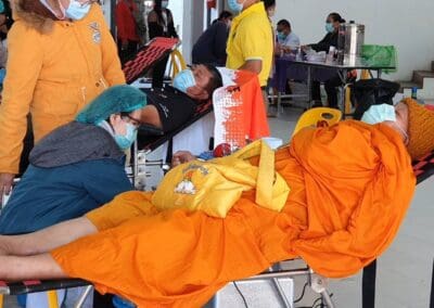 ซึ่งมีประชาชนทยอยเดินทางมาอย่างต่อเนื่องตลอดทั้งวัน โดยก่อนเข้าสู่ขั้นตอนบริจาคโลหิต ทางเจ้าหน้าที่ ได้ทำการตรวจคัดกรองเบื้องต้น และมีมาตรการให้ผู้บริจาครักษาระยะห่างระหว่างกัน ซึ่งศูนย์บริการโลหิตแห่งชาติ รายงานสถานการณ์ยอดการบริจาคและการจ่ายเลือดว่า ขณะนี้มีผู้บริจาคโลหิตลดลงเป็นอย่างมาก เนื่องจากสถานการณ์การแพร่ระบาดของโรคโควิด-19 ศูนย์บริการโลหิตแห่งชาติ สภากาชาดไทย จึงต้องสร้างความมั่นใจให้กับประชาชนที่ประสงค์จะบริจาคโลหิตเรื่องมาตรการความสะอาดและปลอดภัยอย่างเข้มข้น มีการตรวจวัดไข้ คัดกรองเบื้องต้น และมีการเว้นระยะห่างระหว่างผู้มาบริจาคฯ จึงขอให้ประชาชนมั่นใจได้
