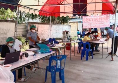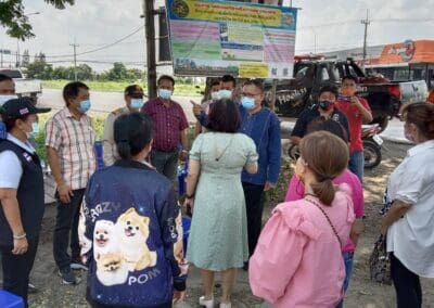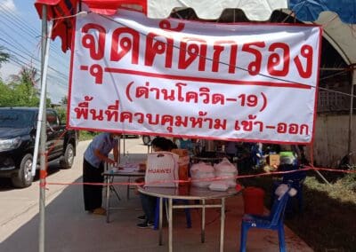 ด้านนางสาวจินตนา นันทิประภา ผู้อำนวยการโรงพยาบาลส่งเสริมสุขภาพตำบลตลาดแค ได้นำเจ้าหน้าที่ อสม.เข้าตรวจสุขภาพ แนะนำการรักษาสุขอนามัยให้กับชาวบ้านในช่วงที่ปิดหมู่บ้านจำนวน 14 วัน ซึ่งชาวบ้านได้ให้ความร่วมมือกับทางเจ้าหน้าที่เป็นอย่างดี ไม่มีใครเดินทางออกไปไหนเลย และจากภาพมุมสูงจะเห็นได้ว่า ชาวบ้านจะเก็บตัวอยู่บ้านใครบ้านมัน มีเพียงเจ้าหน้าที่เข้าไปมอบถุงยังชีพและเครื่องอุปโภค-บริโภคให้เท่านั้น