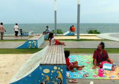หลังจากมาตรการผ่อนปรน ออกมา ความสุขของคนปากน้ำปรานบุรี จ.ประจวบคีรีขันธ์ ก็เริ่มกลับคืนมา สองเดือนเต็มที่พวกเขาได้ช่วยชาติด้วยการกักตัวอยู่บ้าน กิจกรรมการค้าขาย ต้อนรับนักท่องเที่ยว ได้หยุดแบบร้อยเปอร์เซนต์ เสียงหัวเราะ ของเด็กๆ ความสุขที่พวกเขา บอกว่า ได้ออกมาวิ่งเล่นบนสนาม ลานซิเมนต์ ที่ เทศบาลได้สร้างไว้ให้ ในช่วงเย็นๆ กลับมา ส่งคืนพื้นที่ความสุขให้ ได้ 2 วัน แม่ค้าตลาดยิ้มหวาน ต่างบอกว่า ได้ออกมาค้าขาย หารายได้ กัน ปกติช่วงเย็นๆ ก็จะมาจัดวางแผงค้าขาย ริมถนนเรียบชายทะเล ตั้งแต่ สี่โมงเย็น ถึงสองทุ่ม จะมีนักท่องเที่ยว ออกมาออกกำลังกาย เดินเล่น นั่งเล่น รับลมทะเล ตลอดแนว เกือบ 10 กม. ถึง เขาหัวกระโหลก ชายหายที่นี้ จะสงบ ร่มรื่น ปลอดภัย คนไทยจะนิยม แวะมาพัก ชมธรรมชาติ กันอย่างต่อเนื่อง เพราะห่างจากหัวหิน ประมาณ35 กม. ปากน้ำปรานบรุี เป็นชุมชนที่ยังมีวิถีความเป็นอยู่ของชาวเล มีอาชีพทำประมง ชายทะเล มีร้านค้าของฝากที่ระลึก มีความน่ารัก ลงตัว เป็นเอกลักษณ์ อันเป็นหนึ่งในการปักหมุดเส้นทางการท่องเที่ยว ทางภาคใต้