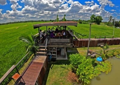 เจ้าของร้าน ที่เล่าแรงบันดาลใจ ที่ เป็นสารตั้งต้น กับ สามี (ผู้พิพากษา) คนรุ่น อะจ๊าก จริงๆ ในวันที่ แค่พัฒนา บ้านพักหลังที่สอง ในวันหยุด จากที่นา เกือบ 2 ไร่ มาร่วมสร้างจุดนัดพบ ที่มี เรื่องราว แห่งความสุข ด้วยอาหารใต้ และกาแฟ ในบรรยากาศ แสน วินเทจกลางทุ่งนา ที่รับรองว่า ‘โอแน่นอน’