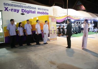 จากนั้น พระบาทสมเด็จพระเจ้าอยู่หัว และสมเด็จพระนางเจ้าฯ พระบรมราชินี เสด็จฯ ไปยังหน่วยแพทย์เคลื่อนที่พระราชทาน ทรงเยี่ยมหน่วยแพทย์เคลื่อนที่พระราชทาน หน่วยแพทย์มูลนิธิกาญจนบารมี โอกาสนี้ ทรงรับผู้ป่วยไว้เป็นคนไข้ในพระบรมราชานุเคราะห์ จำนวน ๙ คน อาทิ ผู้ป่วยโรคมะเร็งเม็ดเลือดขาว โรคมะเร็งสมอง โรคบกพร่องทางการเรียนรู้และการเคลื่อนไหว โรคลิ้นหัวใจรั่ว พิการซ้ำซ้อน เป็นต้น