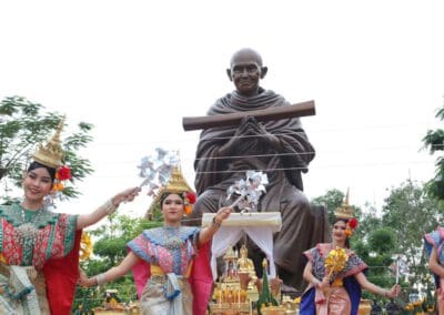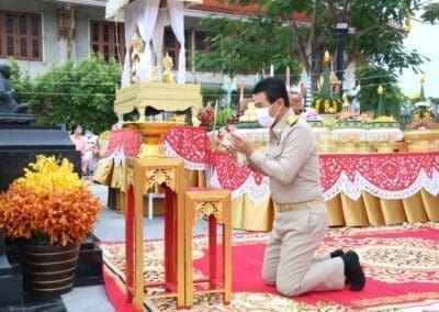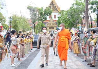 เมื่อรัฐมนตรีประจำสำนักนายกรัฐมนตรีและคณะเดินทางถึง ได้เข้ากราบสักการะพระรูปเหมือนสมเด็จพุฒาจารย์ (โต พฺรหฺมรํสี) องค์ใหญ่ จากนั้นรัฐมนตรีประจำสำนักนายกรัฐมนตรีเปิดกรวยสักการะหน้าพระรูป สมเด็จพระอริยวงศาคตญาณ สมเด็จพระสังฆราช สกลมหาสังฆปริณายก และร่วมกิจกรรมแจกสิ่งของโรงทาน จำนวน 1,000 ชุด ภายในบรรจุข้าวสาร ไข่ไก่สด บะหมี่สำเร็จรูป ปลากระป๋อง 10 กระป๋อง และน้ำมันพืช เป็นเงินชุดละ 520 บาท