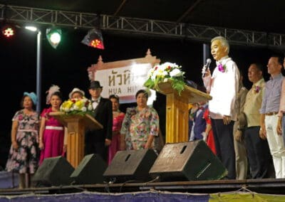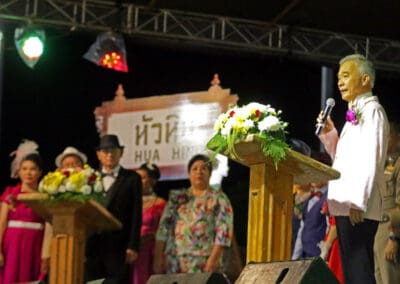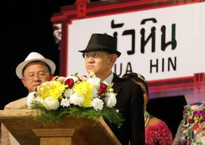“การจัดงาน “หัวหินรำลึก” เป็นการตอกย้ำว่าเมืองหัวหินมีสิ่งที่สวยงาม มีประวัติศาสตร์ มีวัฒนธรรมที่นักท่องเที่ยวก็อยากที่จะมาเยี่ยมมาชม สิ่งที่เราต้องรำลึกในการจัดงานก็มีอยู่หลายอย่าง แต่สิ่งหนึ่งที่อยู่ในหัวใจของพสกนิกรชาวไทยทุกท่าน ผมเชื่อว่าพี่น้องประชาชนชาวหัวหิน ก็คงจะต้องรำลึกถึงพระมหากรุณาธิคุณของสถาบันพระมหากษัตริย์ ที่ได้มีคุโณปการอย่างยิ่งทำให้เกิดความรู้จักเมืองหัวหิน เพราะเดิมเมืองหัวหินไม่ได้เป็นที่รู้จักเมื่อ 100 กว่าปีก่อนเรารู้จักกันแค่ชะอำ แต่ด้วยพระมหากรุณาธิคุณ ให้มีการก่อสร้างต่อเส้นทางรถไฟจากชะอำมาถึงอำเภอหัวหิน เมื่อปี พ.ศ.2543 ตอนนั้นยังไม่มีชื่อ”หัวหิน” ก็มีชื่อ”สมรเรียง” มีชื่อ “แหลมหิน” และค่อยเปลี่ยนมาเป็น “หัวหิน” เป็นที่รู้จักมาถึงวันนี้ ก็ 110 ปีแล้ว” นายสุวัจน์ กล่าวและเล่าว่า