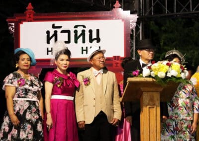 หลังจากนั้นก็ทำให้มีพระบรมศานุวงศ์ เจ้าชายชั้นผู้ใหญ่จากยุโรปเสด็จมาเที่ยวที่หัวหิน และก็มีพระบรมศานุวงศ์ ฝ่ายไทยและเจ้านายชั้นสูงก็จะมาอยู่ที่อำเภอหัวหิน บรรยากาศต่างๆ เหล่านี้ก็เลยสร้างเมืองหัวหิน ให้เป็นเมืองท่องเที่ยวระดับสูง และมีชื่อเสียงมา 100 กว่าปีแล้ว ถ้าจะพูดถึงเมืองท่องเที่ยวที่มีชื่อเสียงในประเทศไทยที่มีเอกลักษณ์ ก็ถือว่าหัวหินเป็นเมืองเก่าแก่ จากเดิมที่เมืองหัวหินเป็นหมู่บ้านประมงและมีหาดทรายสัก 10 กิโลเมตร ฉะนั้น เมืองท่องเที่ยวระดับโลกเค้าจะเป็นประเทศใหญ่ เป็นจังหวัดใหญ่ๆ เป็นอำเภอใหญ่ๆ แต่เมืองหัวหิน แก่นแท้เริ่มต้นจากการเป็นหมู่บ้านประมงมีทรายหาดเต็ม 10 กว่ากิโล แต่คนทั้งโลกรู้จักก็ด้วยพระบารมีสถาบันพระมหากษัตริย์ และนั้นก็เป็นสิ่งที่ชาวเมืองหัวหินต้องรำลึก ร่วมทั้งมีผู้หลักผู้ใหญ่ในบ้านเมืองอีกหลายท่านที่มีส่วนในการสร้างเมืองหัวหิน อาทิ กรมพระกำแพงเพชรอัครโยธิน ในสมัยที่ท่านเป็นผู้ว่ารถไฟ ท่านจะเป็นคนสร้างทางรถไฟมาหัวหิน และก็สร้างสถานีรถไฟหัวหิน ด้วยสถาปัตยกรรมแบบวิคทอเรีย ทำให้เป็นเอกลักษณ์ของเมืองหัวหิน จนกระทั่งวันนี้