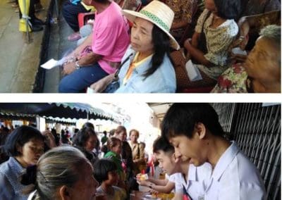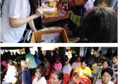 พร้อมกันนี้ ยังมีนายวัลลภ เรืองสุขศรีวงศ์ ที่ปรึกษาหอการค้าจังหวัดบุรีรัมย์ ร่วมกับพ่อค้า นักธุรกิจ และผู้มีจิตศรัทธาจากทั้งในและต่างจังหวัด มาร่วมจัดโรงทานแจกอาหาร เครื่องดื่มฟรีแก่ผู้ยากไร้ด้อยโอกาสที่มาเข้าคิวรอรับบริการตรวจรักษาโรคในครั้งนี้มากกว่า 200 โรงทาน ทั้งยังมีบริการตัดผม นวดแผนไทยคนตรี ดูลายมือ เพ้นท์เล็บ วาดภาพ พิมพ์ภาพในหลวงด้วย ซึ่งปีนี้เป็นปีที่ 23 ที่ได้เปิดให้บริการตรวจรักษาโรคแก่ผู้ยากไร้
