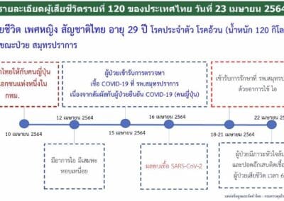 ขณะที่ผู้เสียชีวิต 4 ราย ในกทม สงขลา และ สมุทรปราการ รายหนึ่งอายุเพียง 29 ปี มีภาวะอ้วน พบเชื้อในวันที่ 16เม.ย.และเสียงชีวิตในวันที่ 22 เม.ย.