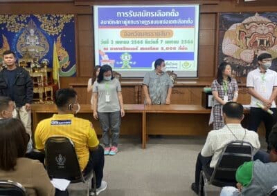 นครราชสีมา – เมื่อ 2 เม.ย.66 ที่ชาติชายฮอลล์ สนามกีฬาเฉลิมพระเกียรติ 80 พรรษา คณะกรรมการเลือกตั้งประจำจังหวัดนครราชสีมา ได้มีการจัดการประชุมชี้แจงขั้นตอนในการรับสมัครของผู้สมัครสมาชิกสภาผู้แทนราษฎรแบบแบ่งเขตการเลือกตั้งของจังหวัดนครราชสีมาให้กับเจ้าหน้าที่ประจำหน่วยรับสมัคร เพื่อซักซ้อมความเข้าใจในขั้นตอนของการรับสมัครสมาชิกสภาผู้แทนราษฎรแบบแบ่งเขตการเลือกตั้งที่จะมีการเปิดรับสมัครในวันพรุ่งนี้เป็นวันแรกตั้งแต่เวลา 08.30 น.ที่ อาคารชาติชายฮอลล์ สนามกีฬาเฉลิมพระเกียรติ 80 พรรษา