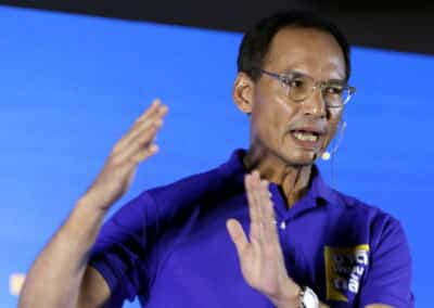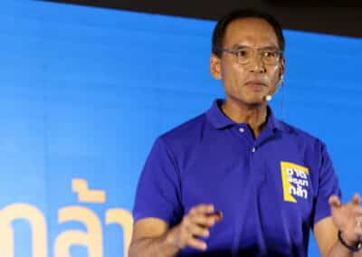 นี่คือสาเหตุที่เราต้องมาแสดงตนที่สงขลา ที่เราต้องมาแสดงตรงนี้หาดใหญ่ ที่เราต้องส่งผู้สมัครที่เรามีความมั่นใจในศักยภาพความรู้ความสามารถ และความมุ่งมั่นให้เป็นตัวเลือกให้กับพี่น้องประชาชน และการจะเติมเต็มศักยภาพของสงขลาการบ้านที่สำคัญ คือ ต้องรื้อโครงสร้างระบบเศรษฐกิจ ซึ่งต้องอาศัยความกล้า ในการที่จะสร้างความ
