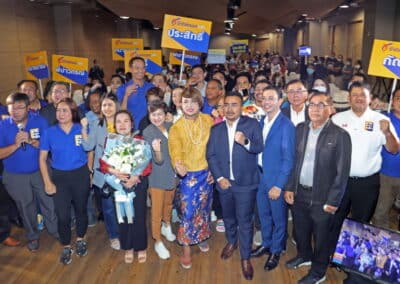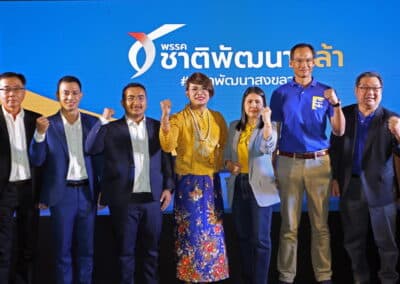 หัวหน้าพรรค กล่าวว่าหลายคนตั้งคําถามในใจ ว่าพวกเราจะทําได้เหรอ ชาติพัฒนากล้าจะทําได้ ผู้สมัครทั้ง 4 คน ไม่เคยลงสมัครเลือกตั้งจะฝ่าด่านการเมืองเก่านี้ได้จริงเหรอจริงๆ คําตอบมันอยู่ที่พวกเรา คําตอบมันไม่ได้อยู่ที่พวกผม แต่สิ่งที่ผมจะบอกกับพวกเราทุกคนก็คือ ความตั้งใจ ความมุ่งมั่น ของเรา ชาติพัฒนากล้า เราสู้จริง สาเหตุที่ชาติพัฒนากับกล้า รวมกันก็เพราะเราตระหนัก ว่าพรรคต้องมีความแข็งแกร่งในระดับหนึ่ง เราถึงจะสู้ได้ เราตระหนักว่า ทั้งก่อนเลือกตั้ง และหลังเลือกตั้งไปแล้ว พรรคต้องเข้มแข็งในระดับที่เรามั่นใจและประชาชนมั่นใจว่าพึ่งพาเราได้ว่าเลือกเรามาแล้ว เราชนะ เราสามารถที่จะเข้ามาทํางานสร้างความเปลี่ยนแปลงตามความต้องการและความตั้งใจของพวกเรา และยิ่งได้มีโอกาสได้ทําความรู้จักกับผู้สมัครทั้ง 4 คน วันนี้ผมยิ่งมั่นใจ