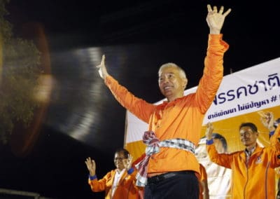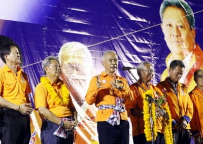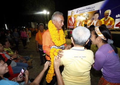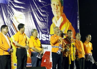 นายสุวัจน์ ลิปตพัลลภ ประธานที่ปรึกษาพรรคชาติพัฒนา พร้อม นายเทวัญ ลิปตพัลลภ หัวหน้าพรรคชาติพัฒนา และนายแพทย์วรรณรัตน์ ชาญนุกูล ที่ปรึกษาพรรคฯ พันเอกวินัย สมพงษ์ ที่ปรึกษาฯ นายสมบัติ กาญจนวัฒนา ผู้สมัครบัญชีรายชื่อ ขึ้นเวทีปราศรัยหาเสียงช่วย