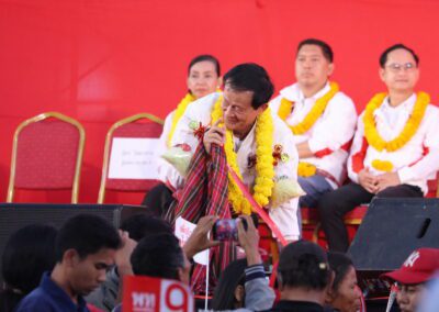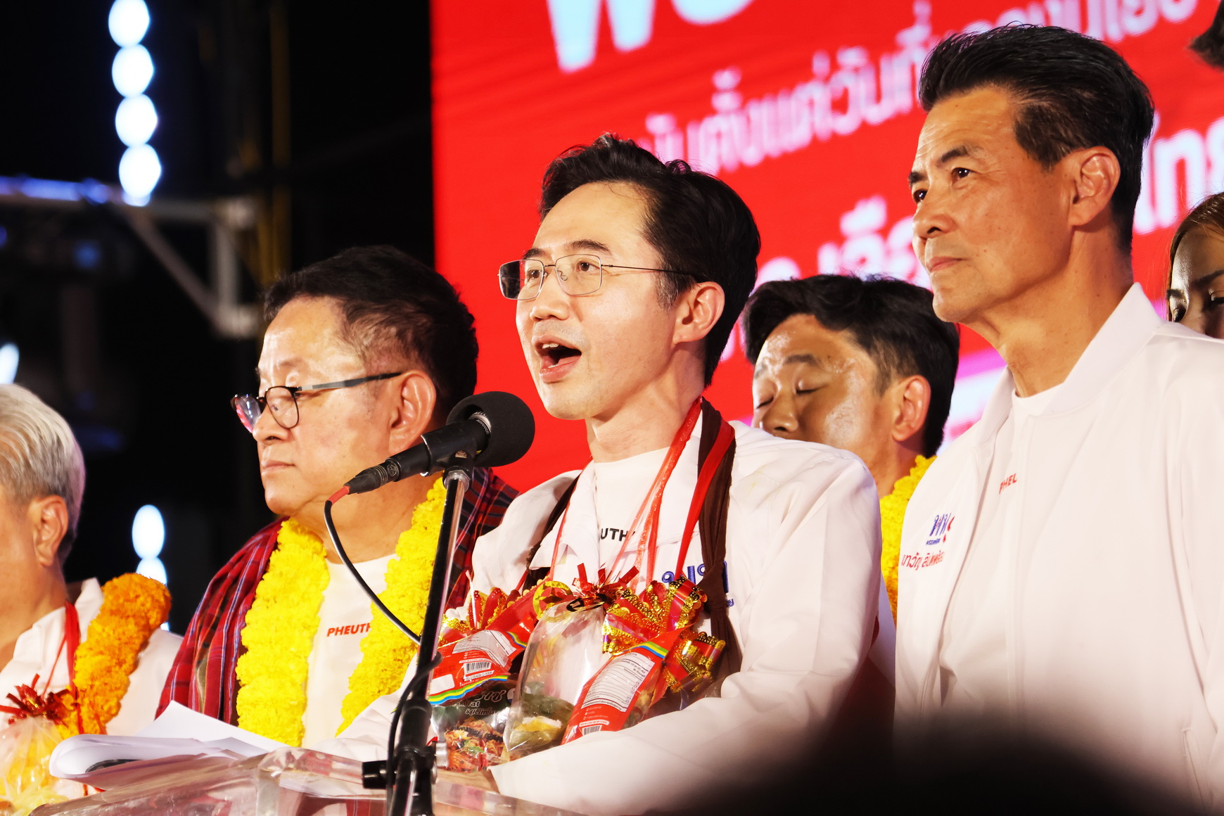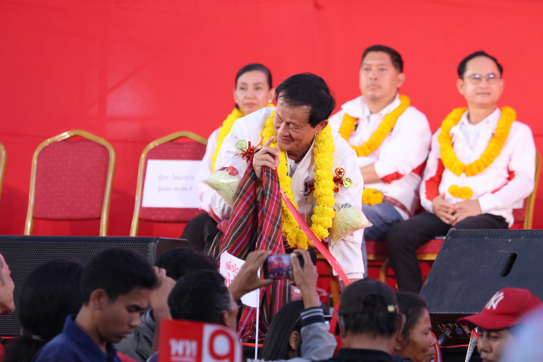 บรรยากาศภายในงานเป็นไปอย่างคึกคัก มีประชาชนนำของดีเมืองโคราช เช่น หมี่โคราช แคบหมู น้ำพริกปลาร้า กุนเชียง ข้าวตัง หมูแท่ง มารอยเป็นพวงมาลัย มามอบให้กำลังใจผู้สมัคร และพรรคยังเปิดตัวเพลงหาเสียงใหม่ชื่อ “อาจารย์เชน” ใช้ประกอบการรณรงค์ในช่วงโค้งสุดท้ายของการเลือกตั้ง