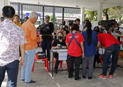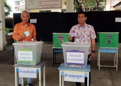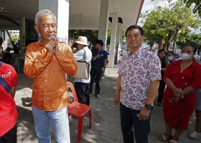 เมื่อเวลา 09.09 น. วันที่ 14 พ.ค.2566 นายสุวัจน์ ลิปตพัลลภ ประธานพรรคชาติพัฒนากล้า พร้อมด้วย นายเทวัญ ลิปตพัลลภ เลขาธิการพรรคชาติพัฒนา เดินทางไปใช้สิทธิลงคะแนนเสียงเลือกตั้งส.ส.ที่หน่วยเลือกตั้ง 169 ศาลาอเนกประสงค์วัดหลักร้อย ต.ในเมือง อ.เมืองนครราชสีมา โดยนายสุวัจน์ฯ อยู่ลำดับที่ 250 และนายเทวัญฯ อยู่ลำดับที่ 251