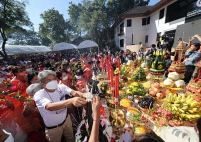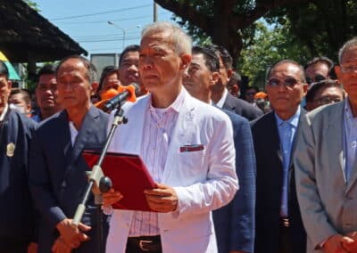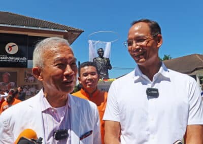 “ผมต้องขอขอบพระคุณ พี่น้องชาวโคราชที่ได้มาร่วมงานกันหลายพันคนด้วยความน่ารัก และท่านไม่ได้มามือเปล่าจะมีดอกไม้จากหมู่บ้าน จากสวน จากที่ไหนที่จัดเตรียมมาเพื่อมาวางหน้าอนุสรณ์สถานน้าชาติ เพื่อแสดงออกถึงความอาลัยรัก ที่มีต่อท่านอดีตนายกฯ ขวัญใจชาวโคราชที่ได้สร้างคุณูปการ ผลงานอันยิ่งใหญ่ จํานวนมากมาย ให้กับประเทศชาติและก็คนโคราช”นายสุวัจน์ กล่าวและย้ำว่า