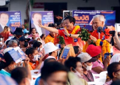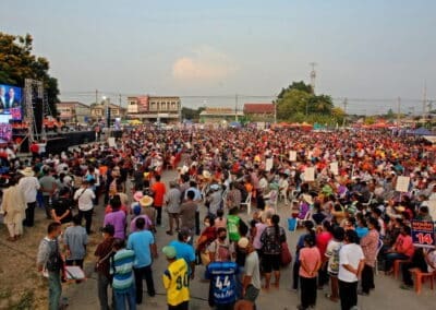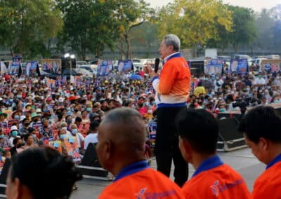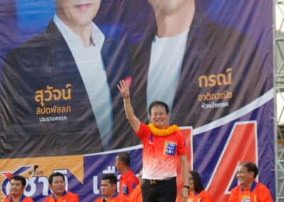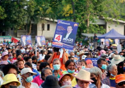 วันนี้ 21 เมษายน 2566 เวลา 17.00 น.นายสุวัจน์ ลิปตพัลลภ ประธานพรรคชาติพัฒนากล้า นำผู้สมัครสมาชิกสภาผู้แทนราษฏร จ.นครราชสีมา 16 เขตเลือกตั้ง พร้อมด้วยที่ปรึกษาพรรคฯ อาทิ นายแพทย์วรรณรัตน์ ชาญนุกูล , นายประเสริฐ บุญชัยสุข และ “วิว” นางสาวเยาวภา บุรพลชัย โฆษกพรรคชาติพัฒนากล้า ปู้สมัครส.ส.ระบบบัญชีรายชื่อ เปิดเวทีปราศรัยใหญ่ครั้งที่ 2 ช่วยหาเสียงให้ นายสมศักดิ์ กาญจนวัฒนา ผู้สมัคร ส.ส.เขต 3 เบอร์ 1 และนายสมบัติ กาญจนวัฒนา ผู้สมัครเขต 4 เบอร์ 4 ที่บริเวณลานอเนอกประสงค์เทศบาลตำบลขามทะเลสอ อ.ขามทะเลสอ จ.นครราชสีมา โดยมีพี่น้องประชาชนในพื้นที่ร่วมฟังการปราศรัยกว่า 5,000 คน ในจำนวนนี้มีส่วนหนึ่งเป็นคนรุ่นใหม่ เยาวชน นักเรียน นักศึกษาร่วมฟังการปราศรัยคึกคัก