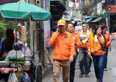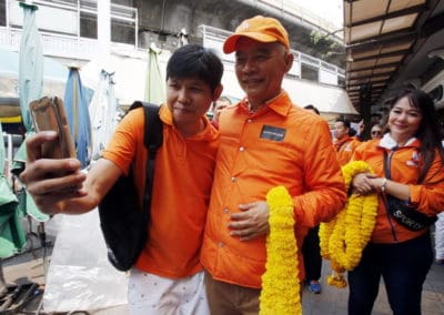 ต่อจากนั้นเวลา 11.30น. นาย สุวัจน์ เดินพบปะ ประชาชน บริเวณ ตลาดกิ่งเพชร ซอย พญานาค นับเป็นชุมชนขนาดใหญ่ ประชาชนอาศัยจำนวนมากจึงได้แจกใบปลิวแนะนำตัวผู้สมัคร สส.กทม.พร้อมกับชี้แจงนโยบาย 9 Smart City ที่จะทำให้ กทม.เป็นเมืองแห่งการท่องเที่ยว ลงทุนและ เมืองทันสมัยเต็มไปด้วยพื้นที่สีเขียว ระหว่างเส้นทางเท้า ไปขึ้นรถไฟฟ้า บี ที เอส ที่ สถานี ราชเทวี ปลายทาง สถานี อนุสาวรีย์ชัยสมรภูมิ เพื่อพบปะกับ เจ้าของร้านค้า และ ประชาชน บริเวณ เกาะพญาไท อนุสาวรีย์ชัยสมรภูมิ เขต พญาไท อย่างไรก็ตามระหว่างเดินหาเสียงพบปะกับผู้สมัครพรรคอนาคตใหม่ โดยนายสุวัจน์ กล่าวทักทายด้วยใบหน้ายิ้มแย้มแจ่มใส
