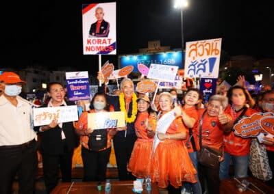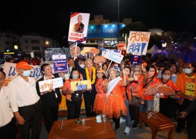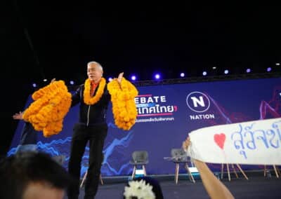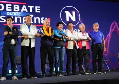 เมื่อวันที่ 11 มีนาคม 2566 ณ 18.00 น.ลานอนุสาวรีย์ท้าวสุรนารี จ.นครราชสีมา เครือเนชั่น จัดเวทีดีเบตอนาคตประเทศไทย สัญจร โดยเริ่มที่ภาคอีสาน จ.นครราชสีมา เป็นเวทีแรก มีแกนนำพรรคการเมืองทั้ง 7 พรรค ประกอบด้วย นายสุวัจน์ ลิปตพัลลภ ประธานพรรคชาติพัฒนากล้า คุณหญิงกัลยา โสภณพนิช รองหัวหน้าพรรคประชาธิปัตย์ นายประเสริฐ จันทรรวงทอง เลขาธิการพรรคเพื่อไทย นายวิรัช รัตนเศรษฐ รองหัวหน้าพรรคพลังประชารัฐ นายกนก วงศ์ตระหง่าน กรรมการและเลขนุการกรรมการนโยบายพรรคชาติไทยพัฒนา นายพริษฐ์ วัชรสินธุ ผู้จัดการการสื่อสารและรณรงค์นโยบายพรรคก้าวไกล นายบุญจง วงศ์ไตรรัตน์ ว่าที่ผู้สมัครส.ส.เขต 9 พรรคภูมิใจไทย ร่วมนำเสนอนโยบาย แสดงวิสัยทัศน์ โดยมีประชาชนและกองเชียร์แต่ละพรรค เดินทางมาร่วมรับฟังเป็นจำนวนมาก