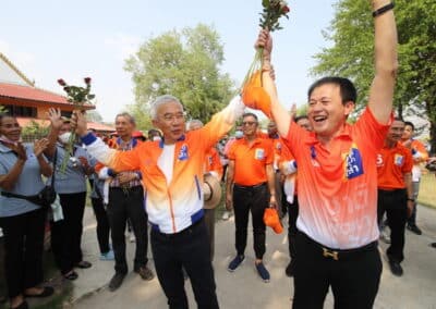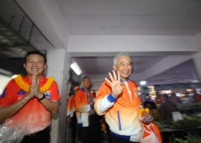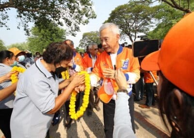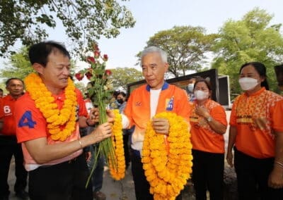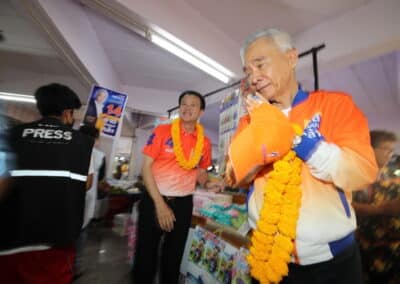 “ผมมั่นใจมากๆ เพราะนายสมบัติผู้สมัครเขต4 เป็นคนรุ่นใหม่ และทำพื้นที่มานาน ขณะที่เขต3 ส่ง นายสมศักดิ์ กาญจวัฒนา หรือ กำนันเบ้า ดังนั้นการเลือกตั้งรอบนี้อาจจะสร้างประวัติศาสตร์ เป็นพี่น้องที่ได้รับเลือกเป็นส.ส.เข้าสภาฯ ทั้งคู่ และมากราบพระนอนด้วยกันต้องได้เป็นส.ส.คู่ ทั้งนี้เมื่อ30ปีก่อน ตอนที่ผมลงเลือกตั้งครั้งแรก ได้มากราบพระนอนและได้รับเลือกตั้ง” นายสุวัจน์ กล่าว