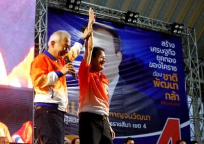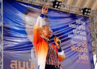 เมื่อถามต่อว่า ใกล้เข้าสู่การเลือกตั้งแล้ว มีพรรคใดมาทาบทามในการร่วมจัดตั้งรัฐบาลหรือไม่ นายสุวัจน์ กล่าวว่า ยังไม่มี แต่ตอนนี้ทำตัวเราให้ดีที่สุด และยังไม่อยากเป็นขั้วการเมืองกับใคร เพราะอาจจะนำไปสู่ความขัดแย้งกัน ส่วนการตัดสินใจทางการเมืองขอยึดผลการเลือกตั้งเป็นหลัก เพราะต้องให้เกียรติพี่น้องประชาชน หากประชาชนตัดสินใจอย่างไร เราก็จะดูว่าพรรคไหนได้เป็นลำดับที่หนึ่ง เพราะการเมืองจะต้องมีความชอบธรรม และมีเสถียรภาพ