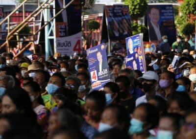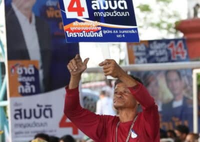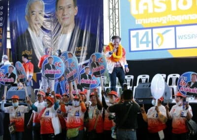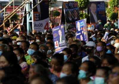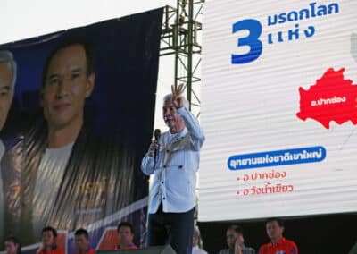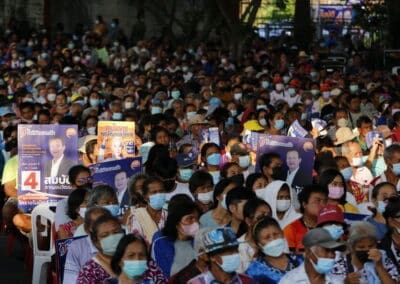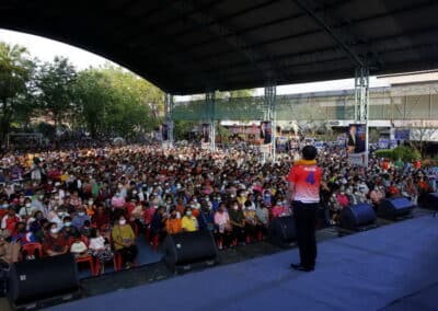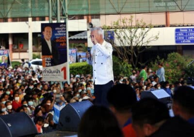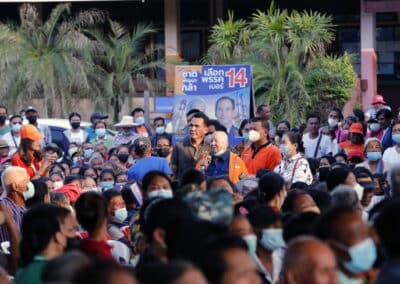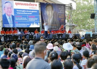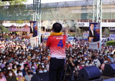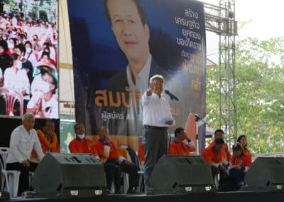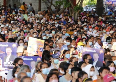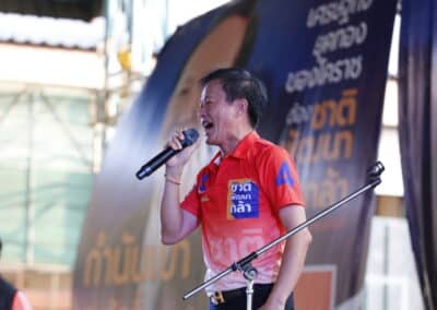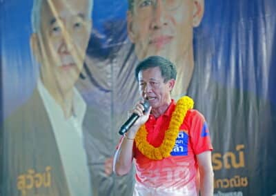 วันที่ 3 พฤษภาคม 2566 เวลา 17.00 น.นายสุวัจน์ ประธานพรรคชาติพัฒนากล้า พร้อมด้วยผู้สมัคร ส.ส.พรรคชาติพัฒนากล้า ทั้ง 16 โดยเฉพาะสองพี่น้องบ้านใหญ่”กาญจนาวัฒนา” นายสมศักดิ์ กาญจนวัฒนา ผู้สมัคร ส.ส.เบอร์ 1 เขต 3 นายสมบัติ กาญจนวัฒนา ผู้สมัคร ส.ส.เบอร์ 4 เขต 4 ได้เปิดเวทีปราศรัยย่อยครั้งที่ 4 กับพี่น้องประชาชนกว่า 5 พันคน ในเขตอำเภอโนนไทย เขตเลือกตั้งที่ 4 ที่โรงเรียนโนนไทยคุรุอุปถัมภ์ อ.โนนไทย จ.นครราชสีมา โดยโค้งสุดท้ายของการเลือกตั้ง นายสุวัจน์ เน้นยุทธศาสตร์ความเป็นพรรคชาติพัฒนา พรรคของคนโคราช เอาเศรษฐกิจยุคทองกลับมา เอานายกรัฐมนตรีมาอยู่โคราช