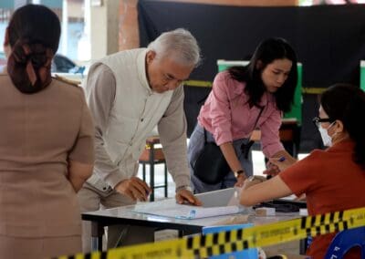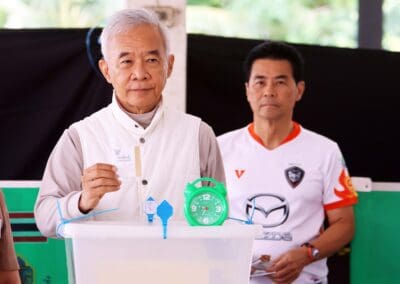 เมื่อวันนี้ 11 พ.ค.68 เวลา 09.30 น.นายสุวัจน์ ลิปตพัลลภ อดีตรองนายกรัฐมนตรี ประธานพรรคชาติพัฒนา พร้อมด้วย นายเทวัญ ลิปตพัลลภ ที่ปรึกษานายกรัฐมนตรี หัวหน้าพรรคชาติพัฒนา ได้เดินทางไปใช้สิทธิ์เลือกตั้งที่หน่วยเลือกตั้งที่ 25 เขตเลือกตั้งที่ 4 ศาลาเอนกประสงค์ภายในวัดหลักร้อย ต.ในเมือง อ.เมืองนครราชสีมา นายสุวัจน์ฯ และนายเทวัญฯ อยู่บ้านเลขที่ 2222/2 ถนนมิตรภาพ ต.ในเมือง อ.เมืองนครราชสีมา โดยนายสุวัจน์ฯ อยู่ลำดับที่ 240 นายเทวัญฯ ลำดับที่ 241 ในบัญชีผู้มีสิทธิ์เลือกตั้ง