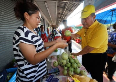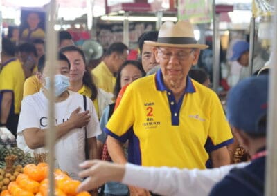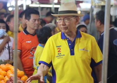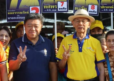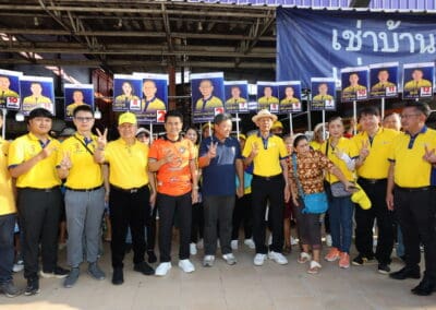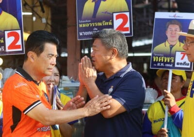 โดยนายอัสนีฯได้กล่าวฝากพ่อค้า แม่ค้าในตลาดพร้อมชู 2 นิ้ว ว่าให้เลือกเบอร์ 2 เอาคนเข้าไปทำงานเพื่อบ้านเมือง