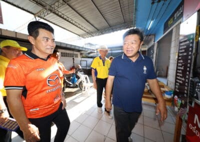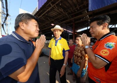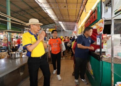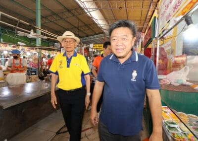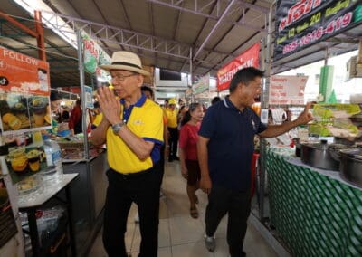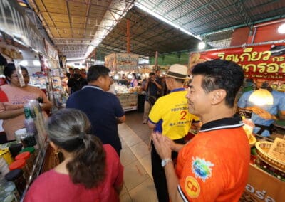 นครราชสีมา – เมื่อเวลา 07.30น.วันนี้ 20 เมษายน 2568 ที่ตลาดหัวรถไฟ ตำบลในเมือง อ.เมืองนครราชสีมา จ.นครราชสีมา นายอัสนี เชิดชัย บุตรชาย”เจ๊เกียว” นางสุจินดา เชิดชัย” เจ้าแม่รถทัวร์ อดีตนายกสมาคมรถโดยสารประจำทางแห่งประเทศไทย และเจ้าของตลาดหัวรถไฟโคราช ได้พานายแพทย์วรรณรัตน์ ชาญนุกูล ผู้สมัครนายกเทศมนตรีนครนครราชสีมา หมายเลข 2 จากกลุ่มโคราชชาติพัฒนา นายเทวัญ ลิปตพัลลภ หัวหน้าพรรคชาติพัฒนาและที่ปรึกษานายกรัฐมนตรี นายประเสริฐ บุญชัยสุข อดีตนายกเทศมนตรีนครนครราชสีมา และผู้สมัคร สท.เขต 3 กลุ่มโคราชชาติพัฒนาเดินหาเสียงในตลาดสดหัวรถไฟทักทายพ่อค้า แม่ค้าและประชาชนที่เดินจับจ่ายซื้อสินค้าและอาหารพร้อมแจกแผ่นพับแนะนำนโยบายของกลุ่มโคราชชาติพัฒนาที่ชี้แจงผลงานที่ผ่านมา 4 ปี ในฐานะแชมป์เก่าและนำเสนอนโยบายใหม่ที่จะทำสานต่อในอีก 4 ปี ข้างหน้าหากได้รับความไว้วางใจจากประชาชนชาวเทศบาลนครนครราชสีมาอีกครั้ง