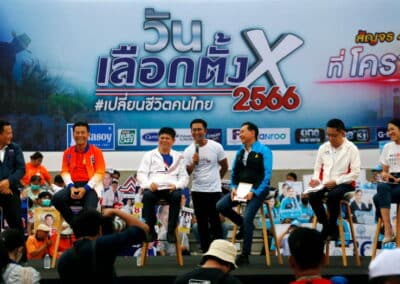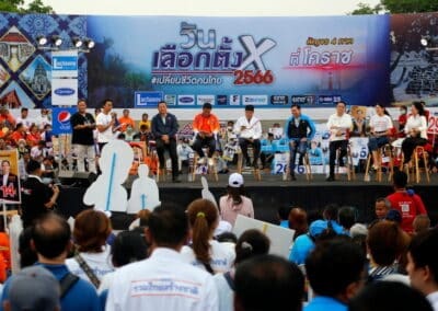 นายเทวัญ ลิปตพัลลภ เลขาธิการพรรคชาติพัฒนากล้า ผู้สมัคร ส.ส.เขตเลือกตั้งที่ 1 หมายเลข 5 แสดงวิสัยทัศน์ดีเบต เวทีสัญจร 4 ภาค เจาะสมรภูมิเดือดทั่วไทย “ศึกช้างชนช้าง ที่โคราช” ณ ลานอนุสาวรีย์ท้าวสุรนารี จัดโดยสถานีโทรทัศน์ช่อง One 31 ว่าพรรคชาติพัฒนากล้า ชูนโยบาย “โคราชโนมิกส์”สร้างเศรษฐกิจยุคทองของโคราช ภายใต้ยุทธศาสตร์ “งานดี มีเงิน ของไม่แพง” ซึ่งจะแก้ปัญหาของแพงด้วยการรื้ื้อโครงสร้างน้ำมัน เปลี่ยนวิธีการคำนวณราคาน้ำมันสำเร็จหน้าโรงกลั่น ใช้สูตรผลิตราคาขายต้นทุนจริง + ค่าการกลั่นตามที่เหมาะสม เพื่อให้ราคาน้ำมันสำเร็จรูปเป็นไปตามกลไกตลาด ส่งผลให้ประชาชนมีโอกาสใช้น้ำมันราคาถูกลงจากการแข่งขันของโรงกลั่น ลดค่าครองชีพ สินค้าราคาถูกลง