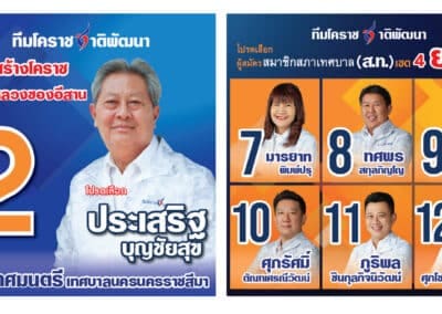 ผู้สมัครเขต 4 มารยาท พิมพ์ปรุ เบอร์ 7, ทศพร สกุลภิญโญ เบอร์ 8 , ดวงทิพย์ ปานรักษา เบอร์ 9 , ศุภรัศมิ์ ตัณฑเศรณีวัฒน์ เบอร์ 10 ,