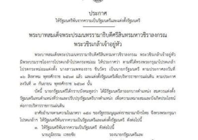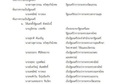 อาศัยอำนาจตามความในมาตรา 158 ของรัฐธรรมนูญแห่งราชอาณาจักรไทย จึงทรงพระกรุณา โปรดเกล้าฯ ให้รัฐมนตรีพ้นจากความเป็นรัฐมนตรีและแต่งตั้งรัฐมนตรี